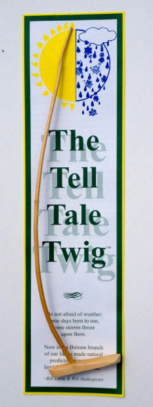 Your television weatherman, working with expensive computerized and graphic-enhanced information, may be less accurate in predicting weather than your "green", one-of-a kind, long lasting, dependable, and pleasantly visual Evergreen Farms produced Twig.